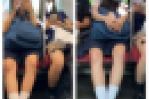 ミニスカートは完全にワカメちゃん状態。動画の前半は超ミニスカパンチラ、後半は体をいろいろ触っていきます。