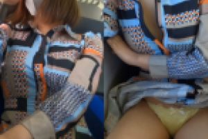 電車で移動中に巨乳の胸チラを撮影させてもらいました。