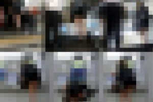 周囲の視線が釘付けになった無防備女子の食い込みパンツまる見え対面盗撮パンチラ