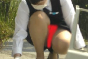 途中フロント&腹チラもゲット。フロントのデザインは花柄で下着には拘っている様子が伺えます。あまりにも食い込みが激しいので途中サイドから怪しいシワが見え隠れしていました…。