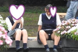公園などに腰掛けたところを狙ってカメラを回していきます。今回は、渋谷区内の公立校の近くにある小さな公園で撮影した2人組のJKちゃん。