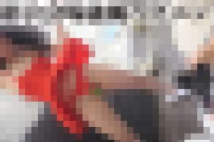 ラストはT☆CH21ブースで紺のハイレグ3名を正面下から煽り撮影など。お尻ではなく切れ込むフロントをお楽しみ下さい。3人とも魅力的な女性ですね~~。※アナログ映像で画質は良くありません。