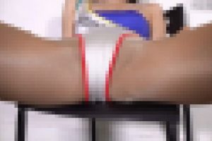 おっぱいもお尻もほぼ丸出し状態&前貼りごと食い込んだハイレグを