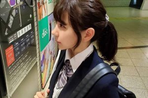 駅のホームで電車を待っていると、すぐ隣にお団子ヘアーのJKを発見!