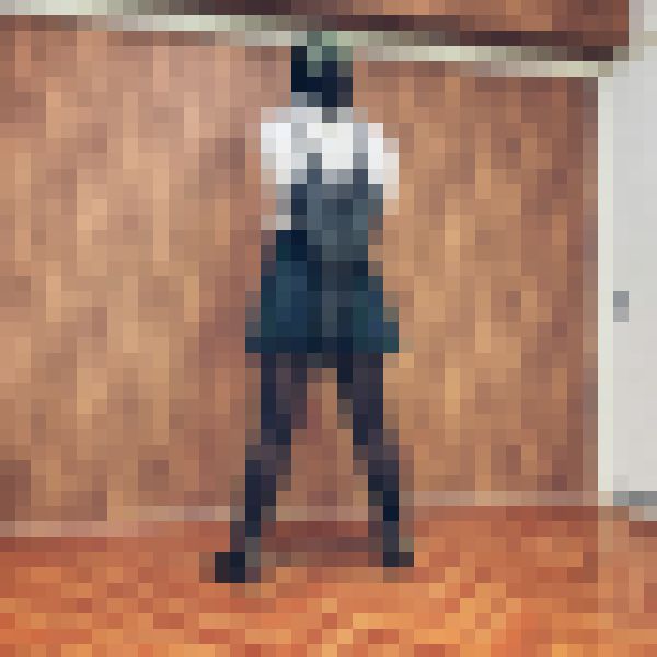 立ち姿で後ろ手にアームバインダーと、閉じられないように足枷。