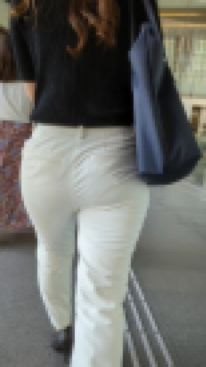 買い物帰りのぷりっとした小尻のお姉さんです。白いブラも透けちゃってますね。