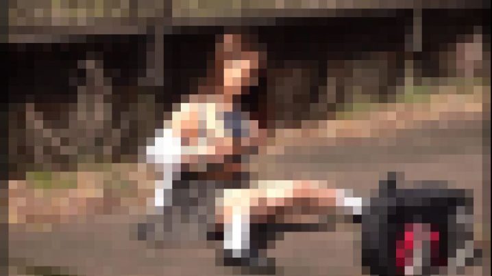 低身 長巨乳の卑猥な身体を野外で晒して悦る真面目系変態な美 少 女。人通りの少ない山道で一人残り露出準備。