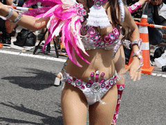 3:08 赤いエナメルのボディコンギャル生脚です、スカートが長くイマイチです。
