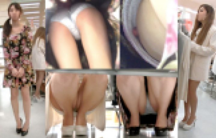 店員&客のWパンチラ同時撮り!パンツに乳首に顔もバッチリ丸見え赤裸々パンチラ盗撮?