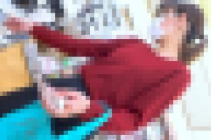 タイトなニットシャツから飛び出すおっぱいは推定Gカップ!!