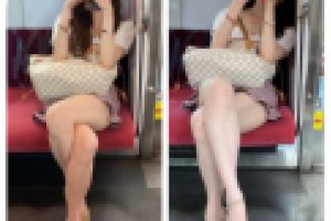 衣装ラックから白いYシャツを取り、腕を入れ着ます。ムチムチお尻に食い込むパンティが見えます。正面に向きボタンをはめ、食い込みパンティラインが細く見えます。黒タイトスカートの中に白いYシャツを入れ整えムチムチ股間が丸見えになります。衣装ラックに向き、中腰になりパンティの食い込みチェックをします。逆さ撮りでムチムチ股間に細まり食い込むパンティを確認します。