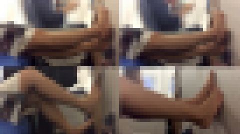 機内の同列に座ったパンスト美脚OLさん。離陸待ちの間、ハイヒールを脱ぎ、脚を伸ばして、つま先をクネクネと