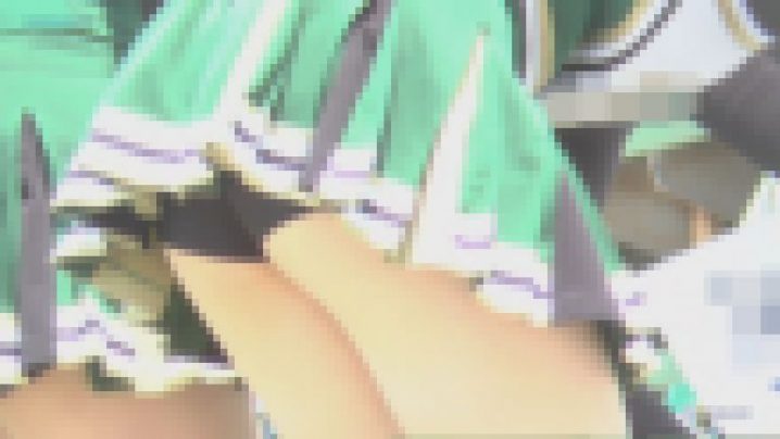 黄色チームが登場!こちらもノースり生足全開脇チラしまくり演技。アンダーはV 紫っつーのがそそります。後半は緑黒白金のチア。くるぶしソックスが激しい演技で靴に入り込んで裸足の上に直接靴を履いているようになっている娘も。一段下がった位置から足を中心に頂いているショットあり。