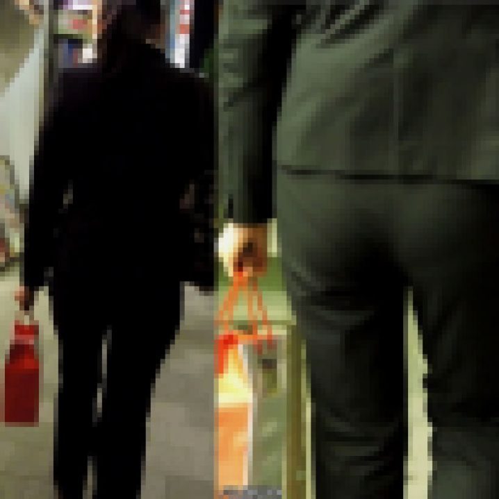 仕事帰り、荷物を持って歩いているところを後ろから撮りました。