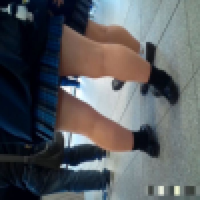 その後は電車で並んでいるところをじっくり生足を堪能して電車対面を別アングルでお届けし、電車降りてからバスに乗るところまでをお届けです後ろ姿からも可愛い雰囲気がばっちり
