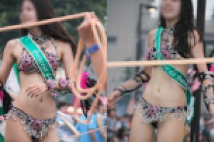 毎年恒例の某所バスロータリーでのサンバイベントを撮影してきました。 某学生連合のサンバチームの中に遠くからでも映える黒髪ロングのモデル並みの美貌と白肌ムッチリのラベンダー女子大生ダンサー二人。 顔はまだ少女っぽさを残した…