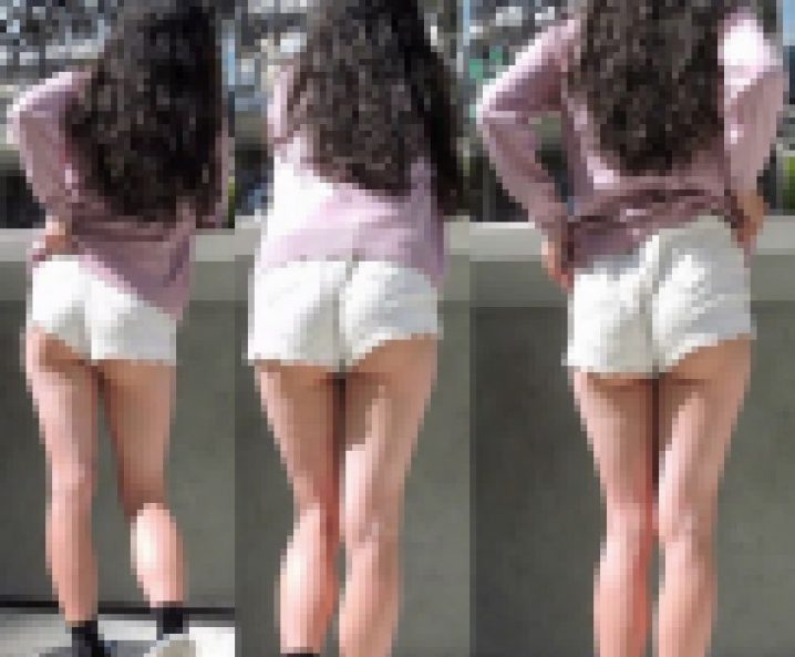 白のショーパン生脚ハミ尻しまくりのエロギャル休憩中を後ろから【動画】ピチエロHIP 006